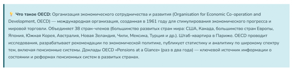 Организация экономического сотрудничества и развития (OECD), объединяющая 38 наиболее развитых стран мира, стала лабораторией пенсионных реформ последних десятилетий. Страны-члены OECD — от США и Японии до Германии и Швеции — внедряли масштабные изменения в свои пенсионные системы, пытаясь найти баланс между финансовой устойчивостью, социальной справедливостью и адекватностью пенсий.